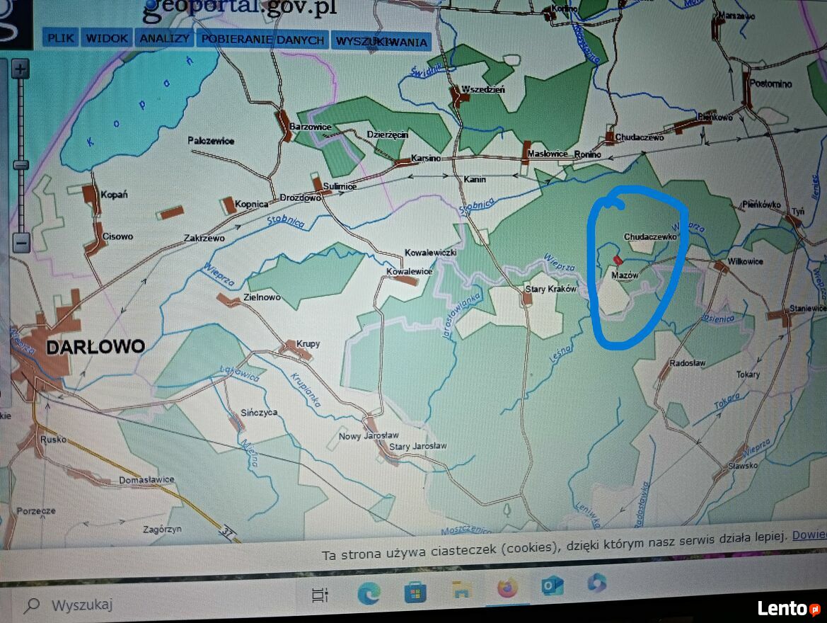 Sprzedam nieruchomość niezabudowaną, częściowo zalesioną w 2002 r. drzewostanem olcha oraz samosiejka - dąb. Działka znajduje się tuż przy drodze asfaltowej prowadzącej do miejscowości Chudaczewko oraz przy rzece Wieprza. Działka rolna nr 90 w miejscowości Mazów, gmina Postomino, woj. zachodniopomorskie.Cena do negocjacji!